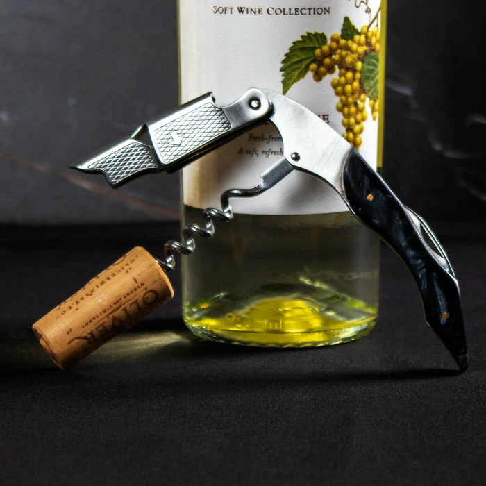 This compact yet durable corkscrew is a must to have on hand for all your wine needs. It is made of durable stainless steel and has a resin-made handle that comes in multiple different colors. It has a corkscrew for removing corks from wine bottles, a serrated foil cutter, and a metal support system that makes removing the cork easier than ever. Fully extended, It measures 7.25″ in length. Folded measures 4.75″.