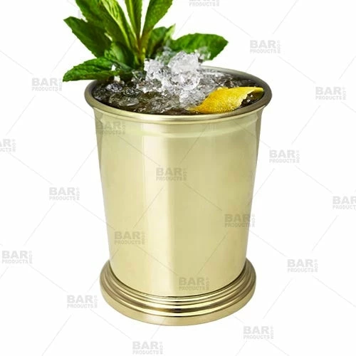 The Mint Julep is one of America’s most iconic and classic cocktails. Traditionally comprised of bourbon whiskey, sugar and mint leaves; the Mint Julep is usually served in a silver cup but it has become popular more recently to serve them in copper cups of the same style. The beautiful smooth gold plated design gives this 12oz cup the elegant vintage feel that has become so prevalent in today’s bar scene. Any master mixologist would be proud to serve drinks in this classic gold cup or even to just display in their bar. Your patrons will love the attention to detail this gold plated cup brings to their classic Mint Julep cocktail.
