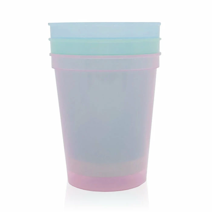 It may just look like a standard stadium cup sitting there, but pour in some ice cold liquid and watch it change right before you eyes! The subtle pastel colors turn into a brilliantly bright and saturated color. You’ll love watching it change as you pour your drink into these cups. Offered in 3 color options of Blue, Green and Magenta these 16 ounce stadium cups make the perfect addition to any party or event.