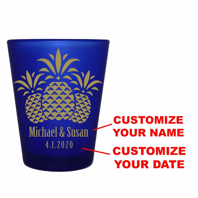 Discount 🥰 BarMan CUSTOMIZABLE – 1.5oz Blue Frosted Shot Glass – Pineapples 💯
