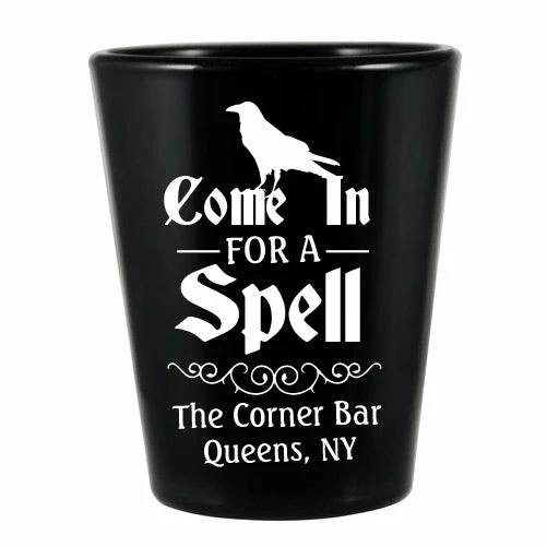 New 🌟 BarMan CUSTOMIZABLE – 1.75oz Black Shot Glass – Spell 🤩 Halloween Design ❤️