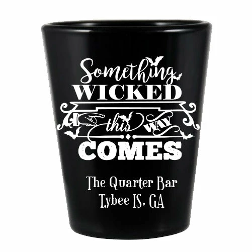 The “Something Wicked” themed template makes a perfect addition to your epic Halloween Party. Customize the bottom two lines with any text you would like from the name of your bash to the name of your bar. Custom shot glasses make excellent party favors or souvenir items for your guests to take home. Our team of expert designers will take the information you provide and layout it out on this fun template design. You can even select from a variety of ink colors.