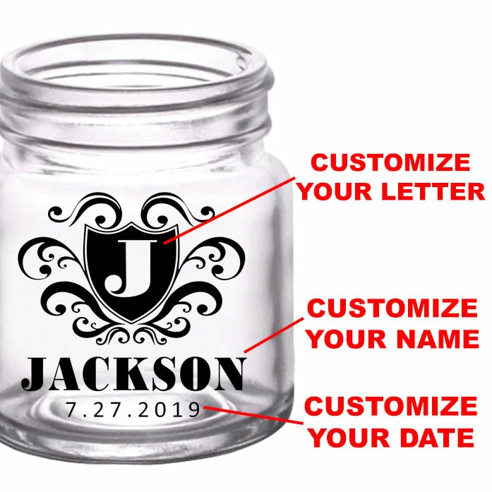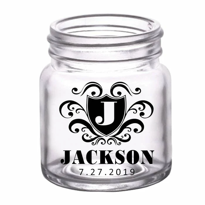Wholesale ❤️ BarMan CUSTOMIZABLE – 2oz Clear Mini Mason Jar Shot Glass – Crest (Version 3) 🌟