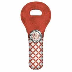 Budget ๐ŸŒŸ BarMan CUSTOMIZABLE Wine Tote – Monogram Design – Red Sunburst // Lattice Pattern ๐Ÿ˜‰