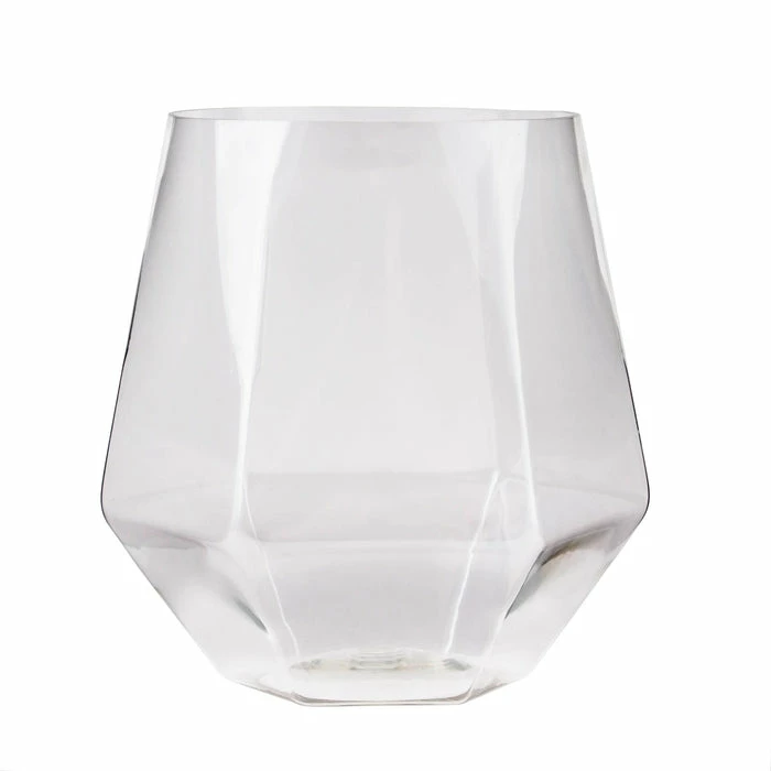 Serve up some wine for your party guests with these stylish diamond shaped wine glasses. Made of durable plastic, these glasses are perfect for serving wine for a variety of parties. They’re easily disposable or they can be reused. If reused it is highly recommended that the cups be hand washed. Each cup has a measurement of 3.75″ with a rim diameter of 2.5″. Each cup has a liquid capacity of 12 ounces and comes in a case of 12 cups.