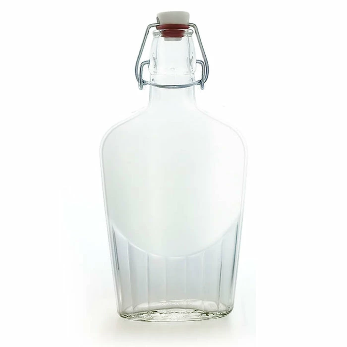 This clear glass bottle with swing top lid can offer a fantastic utility in many different service scenarios. To start, the most dominate feature of this bottle is its tightly suctioned lid mechanism. If you are someone who cares about maintaining ultimate freshness, then you are sure to appreciate this. With a flip of the bar, the cork like rubber insert will close off the opening of this bottle so that nothing is getting through.