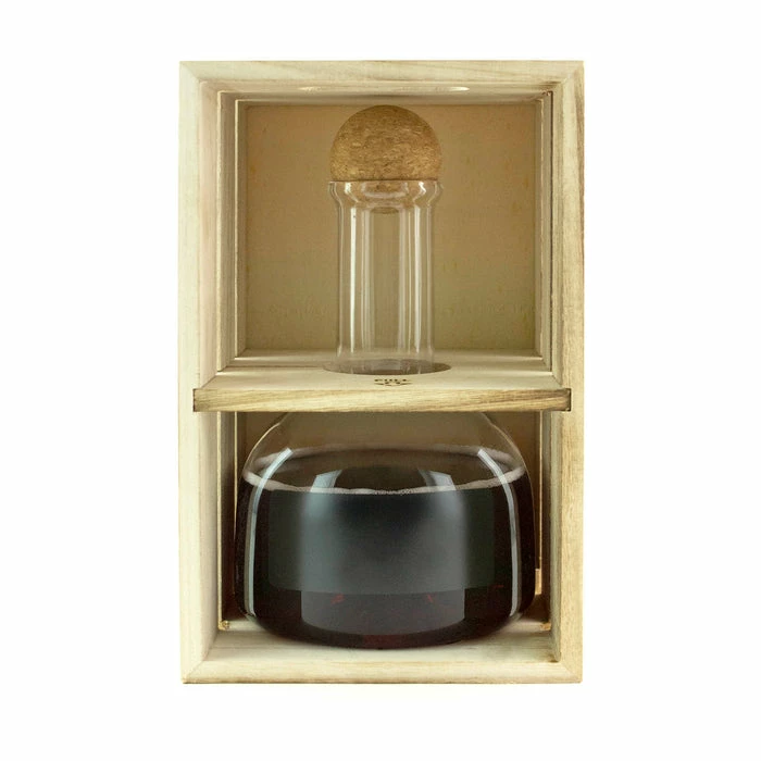 This gorgeous spill-proof bottle makes pouring and storing effortless. Made from a high quality Borosilicate glass, this wine decanter type bottle can be used for all types of beverage service. Featuring a chalkboard strip, you can conveniently labelย theย contents of the bottle. This cork stopper decanter also comes with a wood crate gift box for an added touch of style.ย