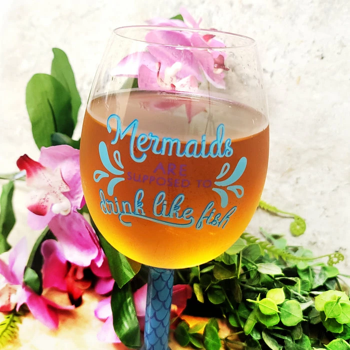 Drink like a fish with this XL mermaid themed wine glass. This exquisitely designed wine glass is beautifully crafted for mermaid lovers who enjoy a glass, we mean bottle, of wine!