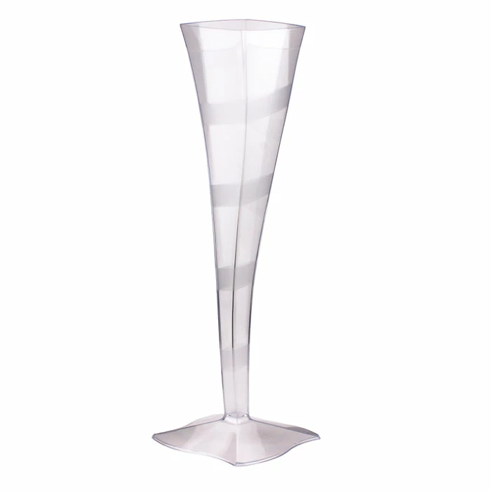 Stylish and durable, these wavy flutes are sure to Impress your guests. Serve many types of drinks such as champagne, sparkling juices and much more. These flutes are a great addition to both casual and formal dining. Each cup is made of durable plastic and has a measurement of 9.5″ tall and has a liquid capacity of 5 ounces. Each pack of cups comes with 6 flutes.